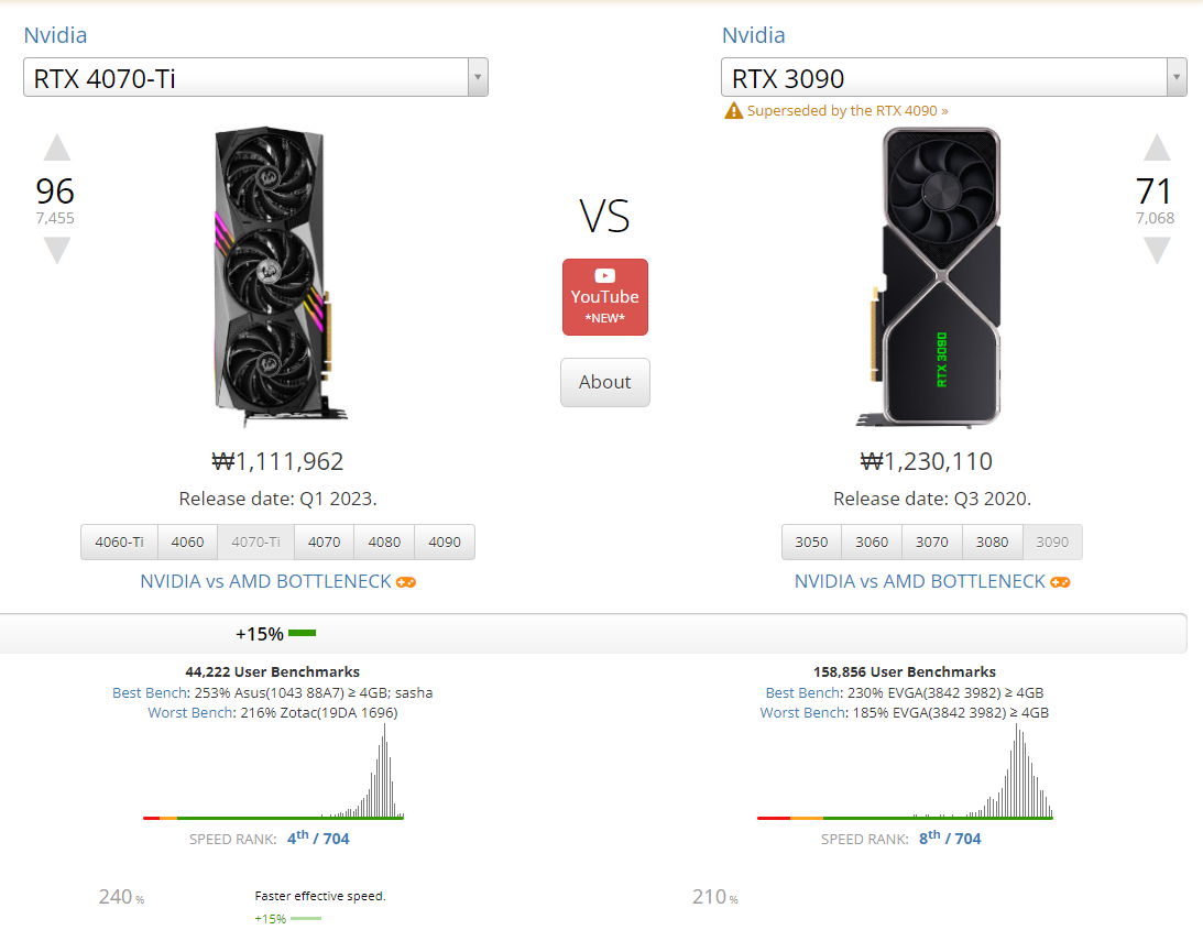 심지어 그 당시 3080이랑 2080ti 성능차이가 한 30% 정도였거든요? 근데 지금 3090ti랑 4090은 대충 60% 차이 납니다..;; 타협해야죠 옵션.. 구형 맞아요 구형.. | 23.09.08 09:25 | | |