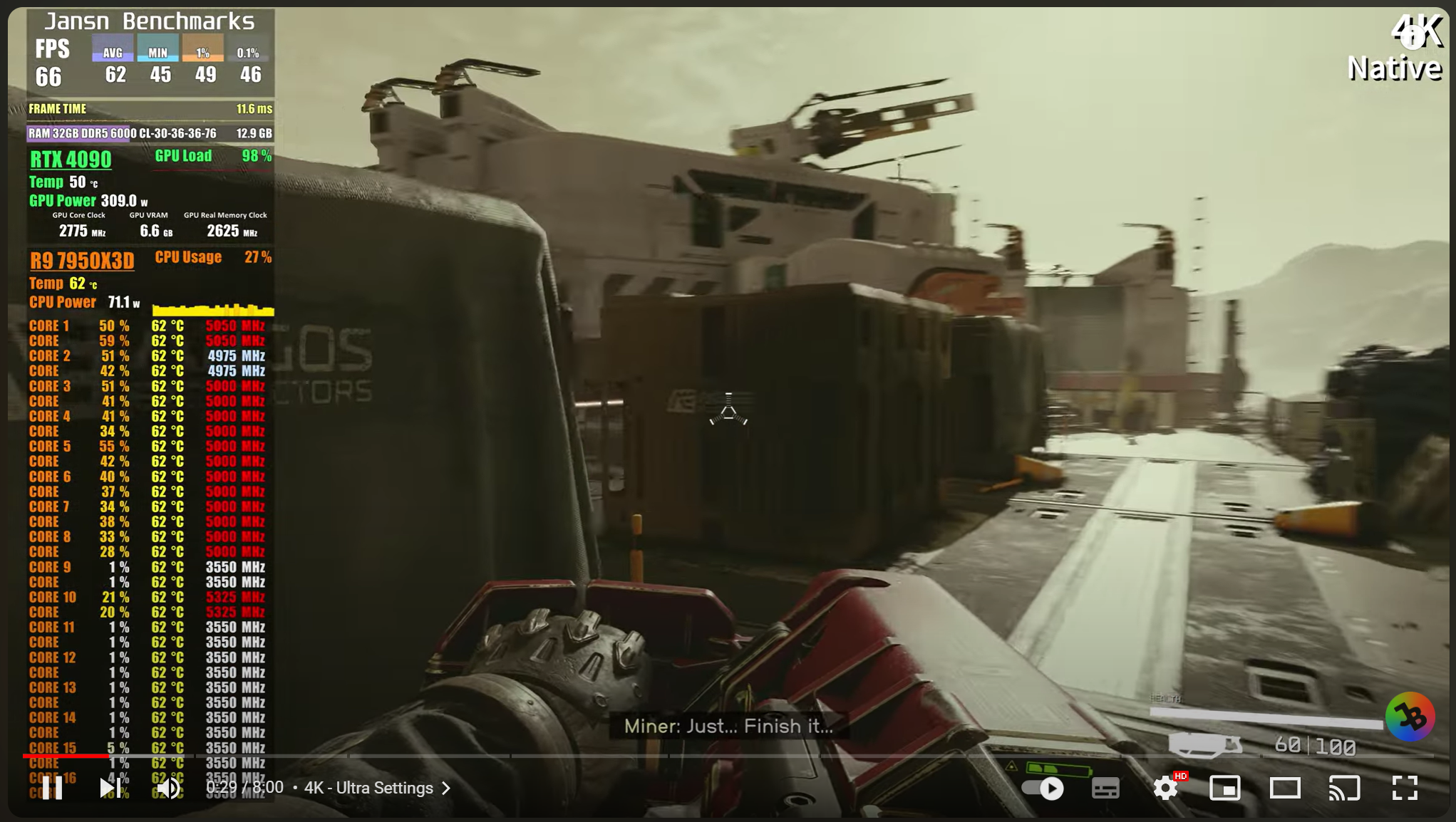 혹시 뭐 상옵이라고 쓰고 울트라 옵이라고 안 썼잖아! 딴지 거실거면 정정 합니다. 4090으로 울트라 4K 옵으면 60프레임 유지 안됌. <- 이겁니다. | 23.09.08 10:13 | | |