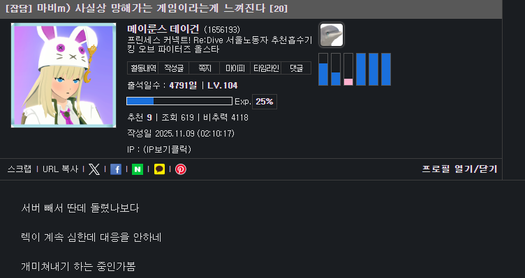 쟤가 원래 맨첨에 선빵 날림 그 뒤에 또 시비턴게 저거고 다른글에 또 와서 또 지혼자 화내다가 차단한답시고 간거 | 25.11.17 03:21 | | |