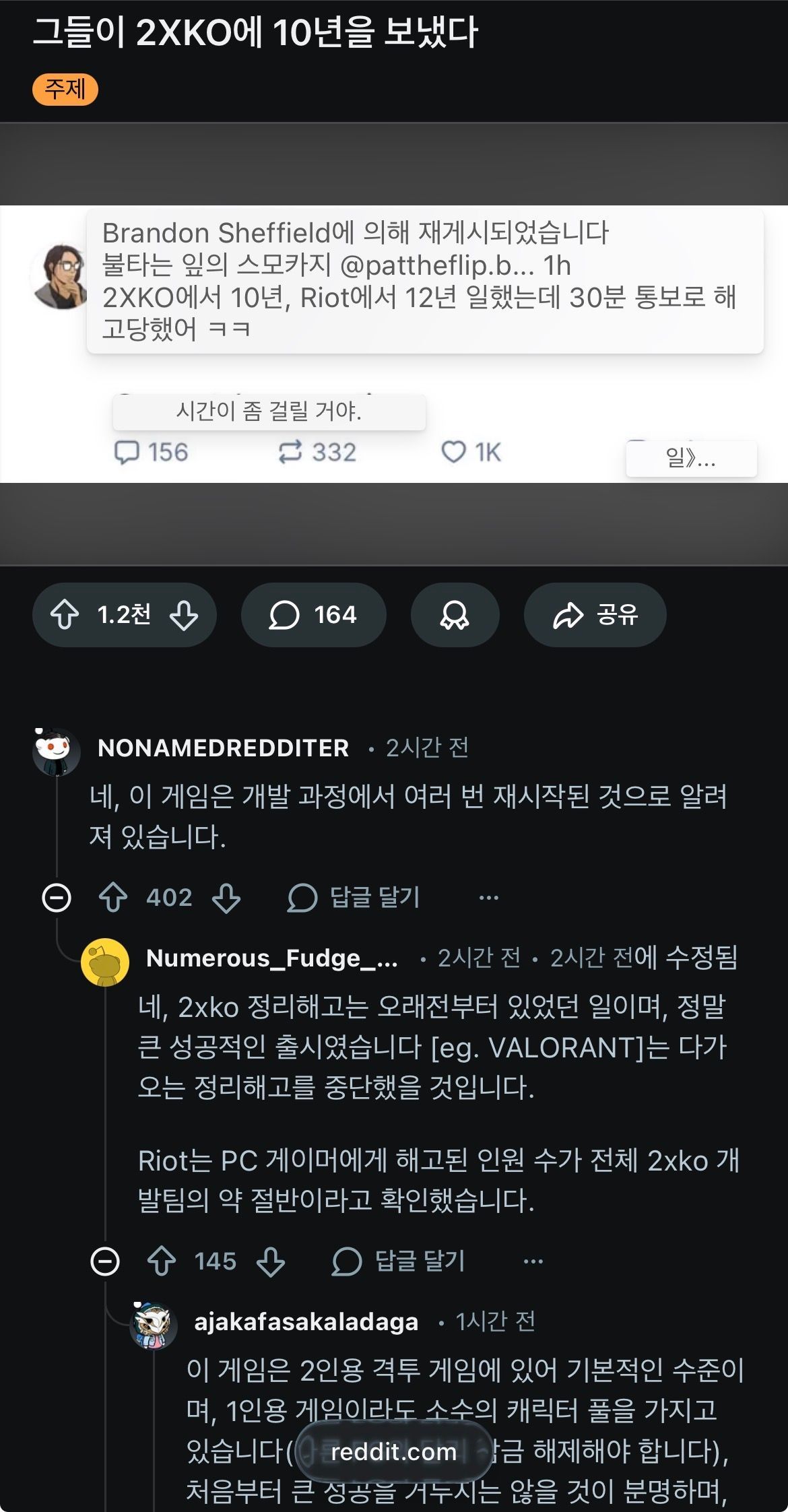 미국 현지 시간으로 9일, 책임 프로듀서인 톰 캐넌(Tom Cannon)은 공식 홈페이지를 통해 '많은 논의 끝에 2XKO 팀의 규모를 줄이기로 했다.'고 밝혔다. 이유는 전체적인 모멘텀이 지금의 팀 규모를 장기적으로 유지할 수 있는 수준에 미치지 못 했기 때문.