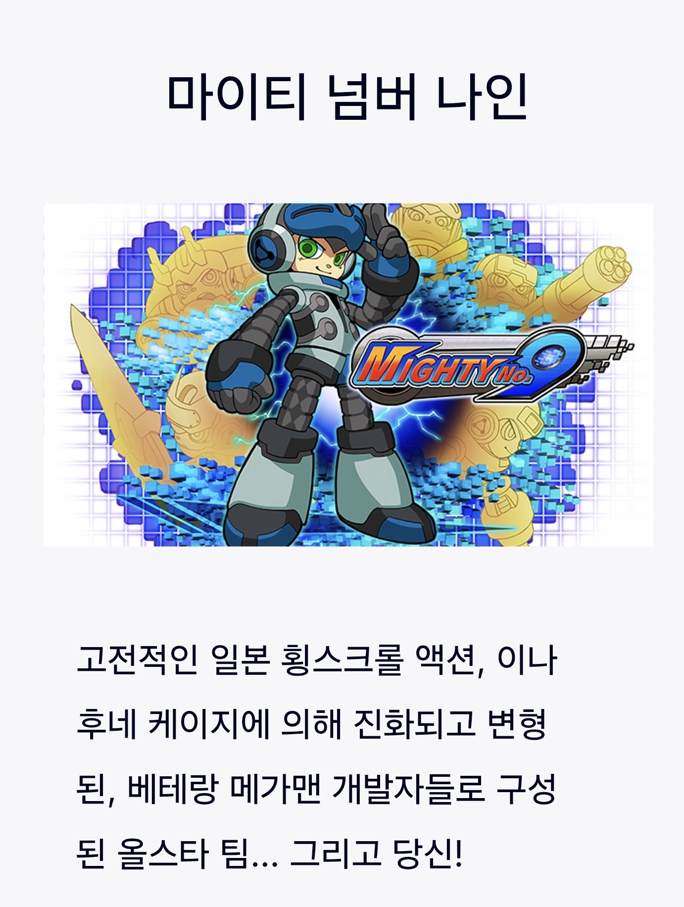 기대에 부응할 만한 것을 만들려고 했는데, 사람에 따라 기대 이하라고 말하는 이도, 좋았다고 말하는 이도 있지만 기대 이하라고 말한 사람의 거의 대부분은 '록맨'을 기대했다고 한다. 록맨은 캡콤에서만 만들 수 있는 것이기 때문에, 그것을 기대했다고 하면 어떤 게임이라도 기대 이하가 되어버린다. 록맨 같은 타이틀의 특별한 부분을 생각하고 (마이티 넘버 나인의) 특별한 부분이 록맨이 아니라고 말하는 분이 있더라. 그렇다면 캡콤의 록맨을 구입해달라고 밖에는 말할 수 없다.