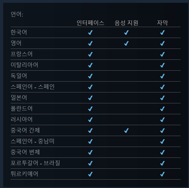 음성은 한국어, 영어, 중국어(간체), 자막은 한국어를 포함한 14개 언어에 대응하고, 아시아 지역 밖에서 구매한 패키지의 경우 중국어를 지원하지 않는다. (디지털판은 지원)
