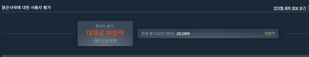 참고로 붉은사막은 스팀에서 첫날 판매 수익순으로 집계하는 '최고 인기 게임' 1위에 올랐으며, 최다 동시 접속 플레이어 수는 239,045 명인 것으로 나타났다.