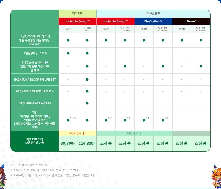 가격은 패키지 버전만 공개되었는데, 일반판이 39,800 원, 디럭스 박스는 114,800 원으로 책정되었다.