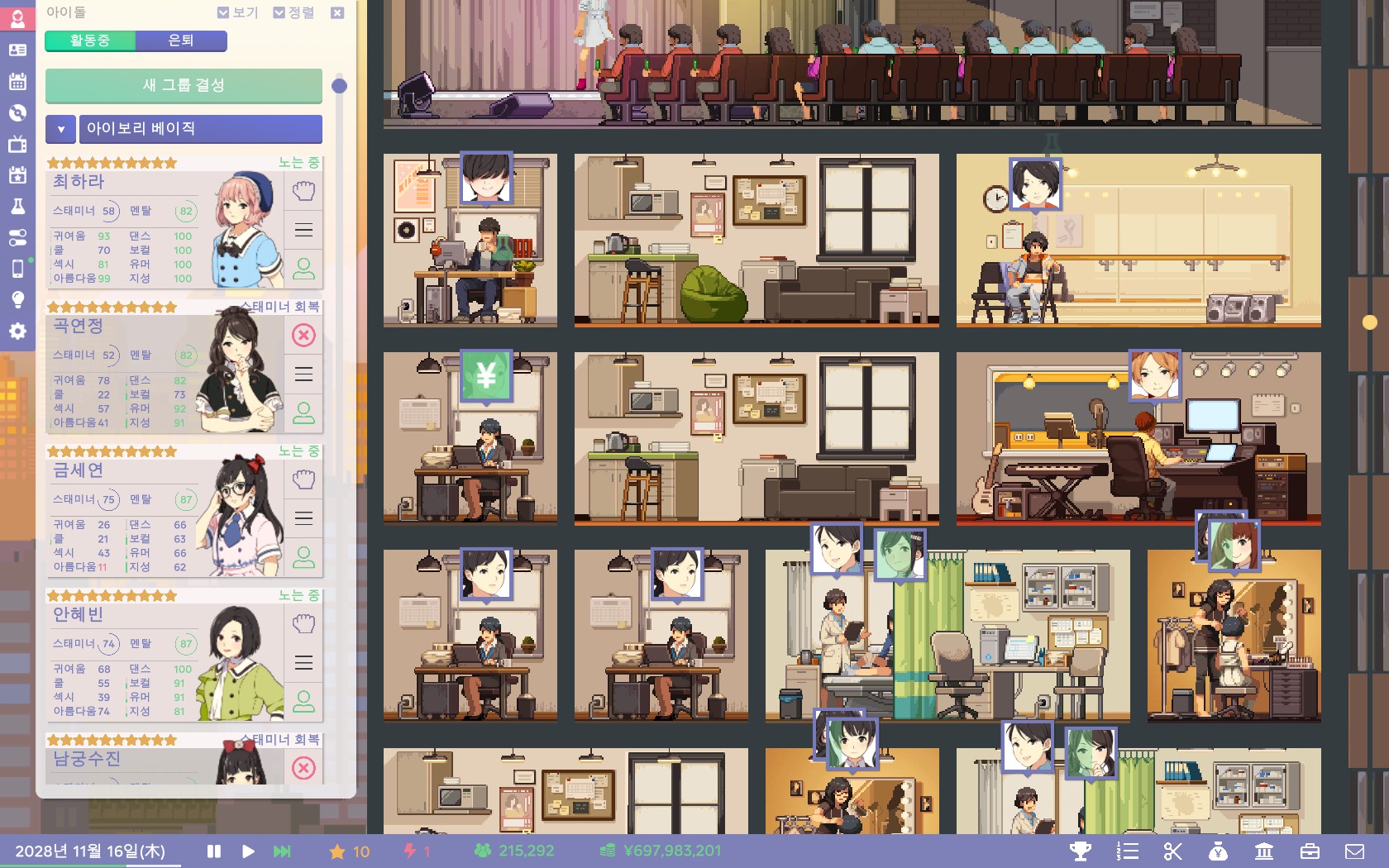 각기 고유한 특성과 배경 스토리를 가진 연습생을 선택하고, 아이돌 그룹을 모아 팀의 성장, 예산, 행동에 영향을 미치는 120게 이상의 활동으로 일정을 관리하며, 예산을 편성하고, 소셜 미디어를 계획하는 라이프 시뮬레이션 게임이다.