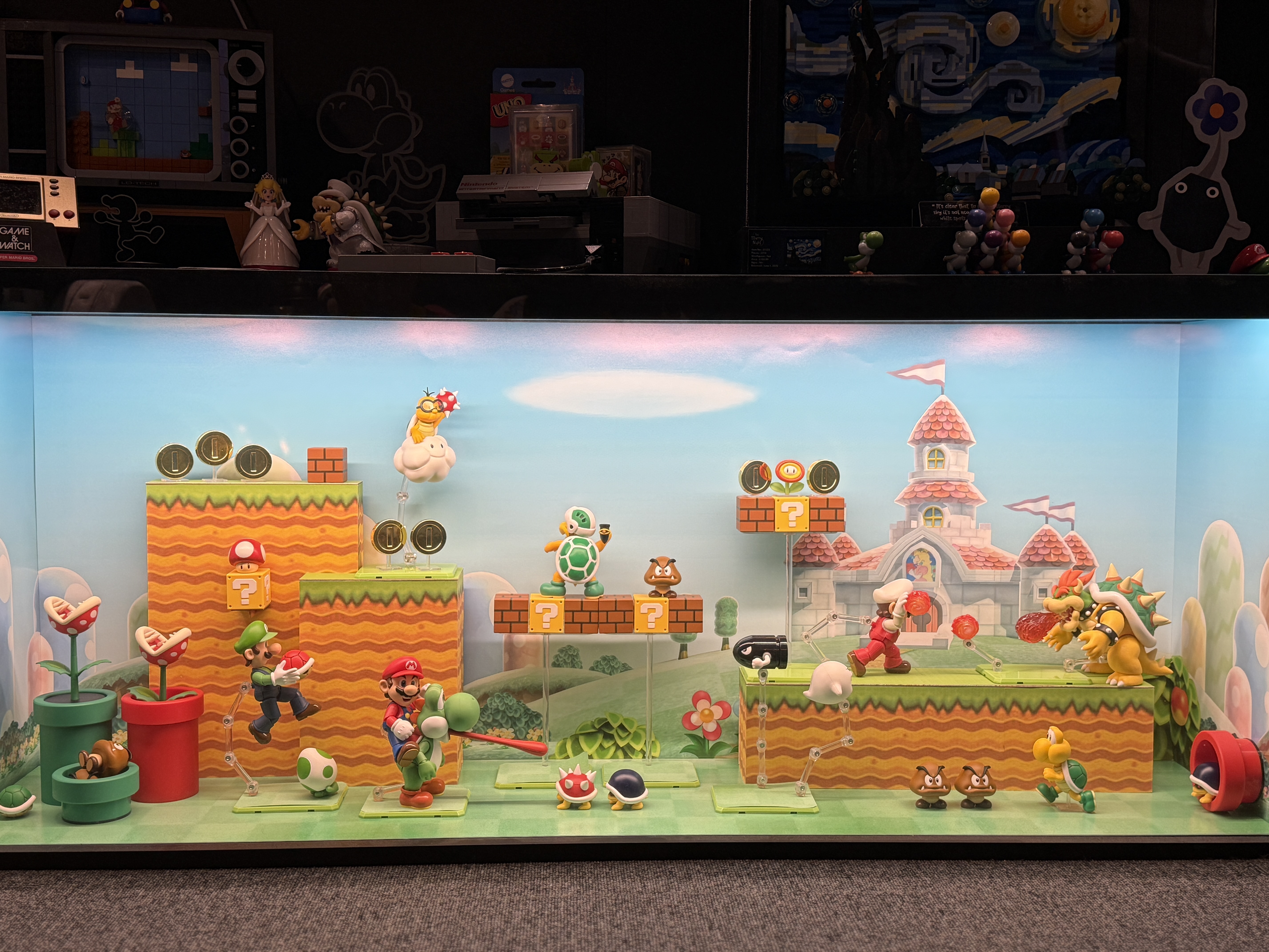 라인업은 '마리오', '루이지', '쿠파', '요시'의 4종이며, 여기에 게임의 한 장면을 연출할 수 있게 해주는 토관, 블록, 코인, 굼바 등으로 구성된 플레이 세트가 별도로 판매된다.