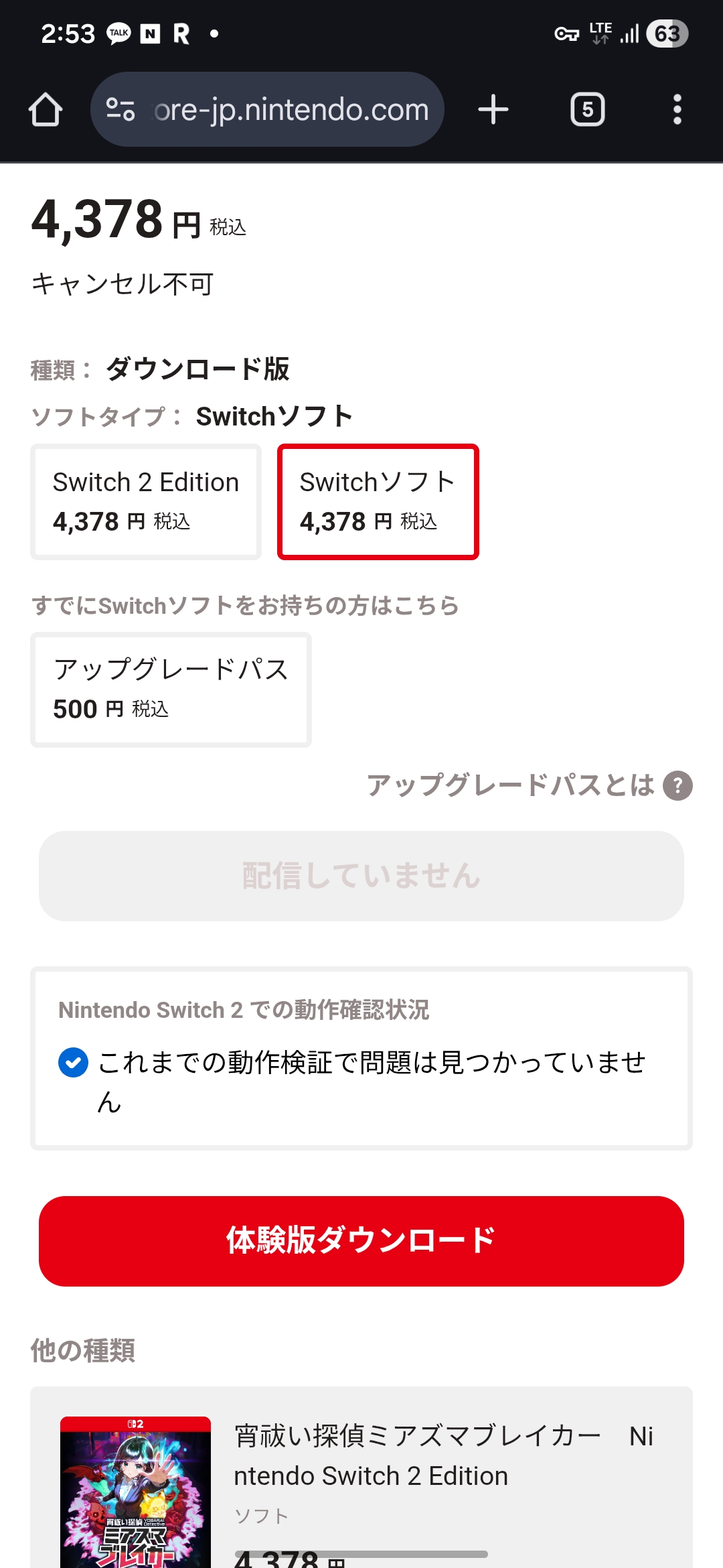 * Nintendo Switch™ 2 다운로드 (※Nintendo Switch™ 버전에서 Nintendo Switch 2 Edition으로의 업그레이드 패스가 출시될 예정입니다.)