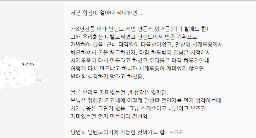 ‘회사에 있어서 손해’가 아니라 ‘개발진의 노고가 버려진다’고 표현한게 미야모토 시게루 답다고 해야하나