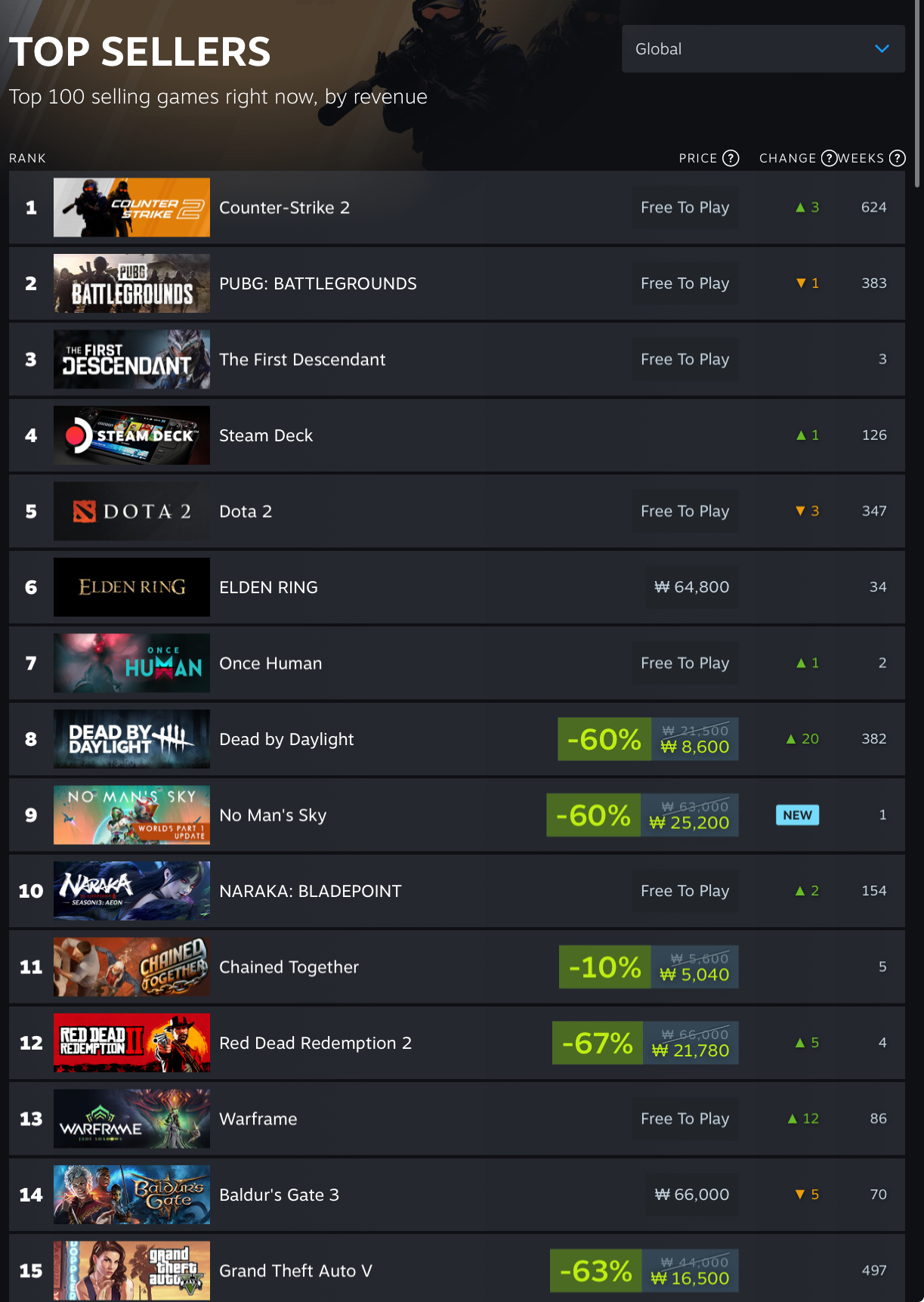 차트 안에 그 서양놈들이 만든 게임이 몇 개나 되는지 세보세요. | 24.07.28 10:21 | | |