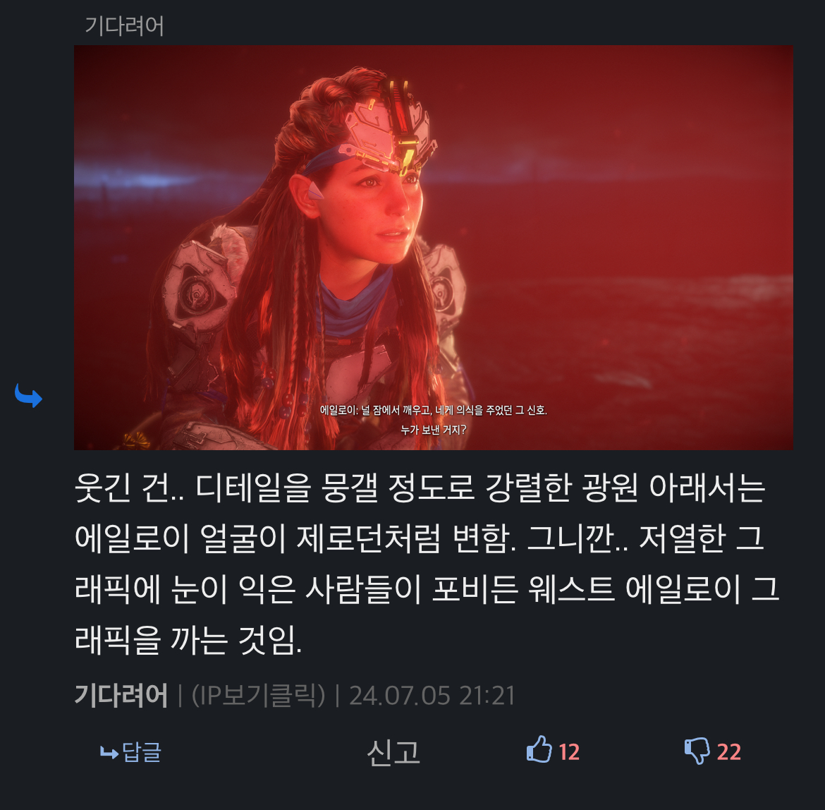 Pc 물든 게임만 나오다 보니 정상(?)적인 게임이 나오니 그럴수도...게임 캐릭터는 남캐는 멋있고 여캐는 예쁘고 이러면 좋죠.어차피 게임은 가상세계인데 게임에 접속하니 pc물든 캐릭들만 나오면 게임 켜기가 싫을거 같긴함 | 24.07.28 06:27 | | |