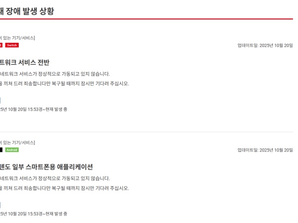 닌텐도도 AWS사용 중입니다. 2021년에도 같은 문제 발생한 적이 있습니다. 여러 게임이 터지고 있네요 | 25.10.20 17:33 | | |