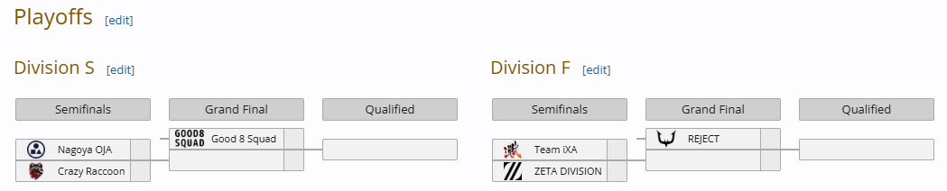 F 디비전에서는 리젝트,팀 iXA,제타 디비전이 진출을 하였습니다