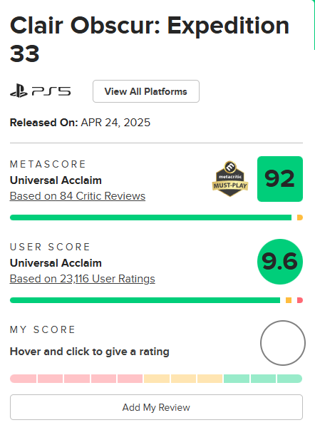 92점이면 명작 맞음. 위쳐3도 92점인데 명작이라 부르잖음. | 25.12.31 01:28 | | |