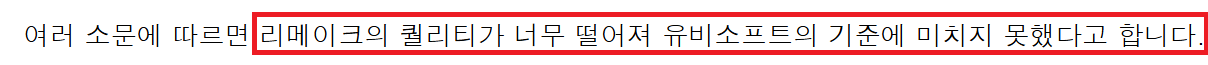 소문에 따르면, 제작 취소의 주된 이유는 리메이크의 퀄리티 때문이라고 합니다. 예를 들어, 주인공의 모습조차 유출된 콘셉트 아트 와 비교했을 때 완성도가 떨어지는 것처럼 보인다고 합니다.