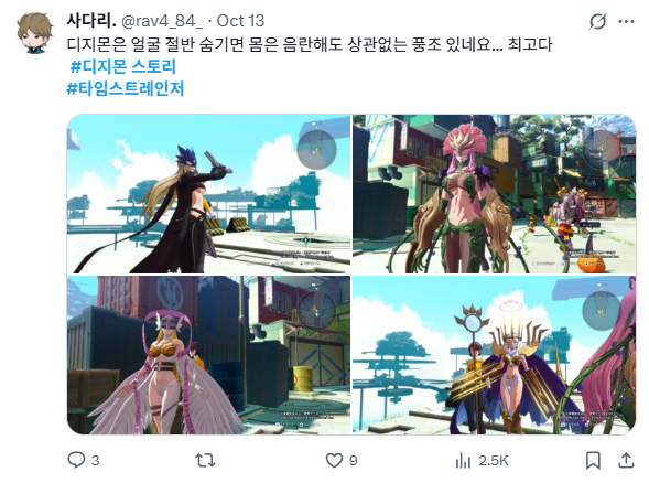 모험을 통해 디지몬을 동료로 만들고, 진화, 퇴화, 커스터마이즈를 거치며 자신만의 디지몬을 키워 나갑시다. 시리즈에 친숙한 디지몬부터 게임에 처음 등장하는 디지몬까지, 다양한 디지몬과의 만남을 즐겨주세요.