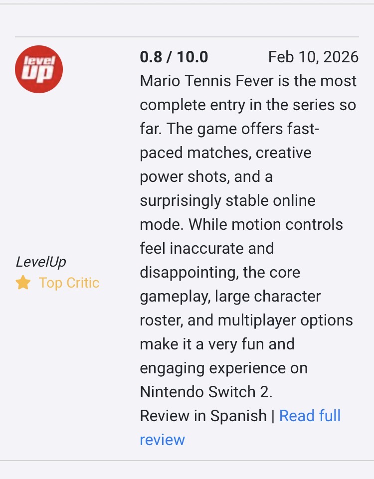 마리오 이외 테니스게임 다 포함해서 76점이면 굉장히 잘나온 점수고 어차피 개발팀 달라서 마리오 외전시리즈 버린다해도 본가게임 빨리 나올일도 없습니다 지금도 잘팔리는게임을 왜 그만내요? 마리오테니스정도면 외전스포츠시리즈중 잘만든겜이라 이런소리 들을정돈 아닙니다 전작도 재밌었구요 | 26.02.11 04:32 | | |