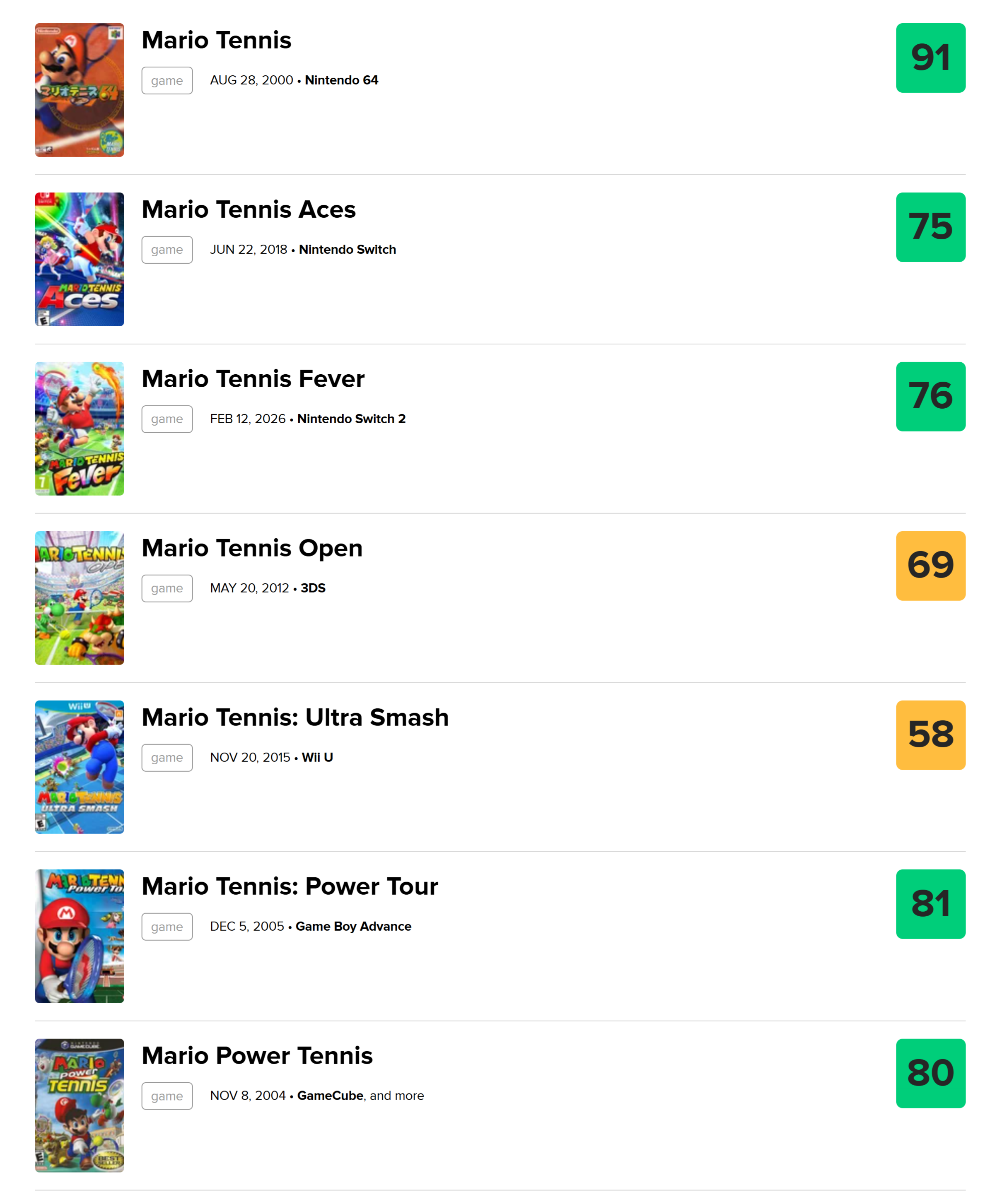 마리오 테니스 전체 시리즈로 보면 그냥 평범한 점수입니다 낮지도 높지도 않음