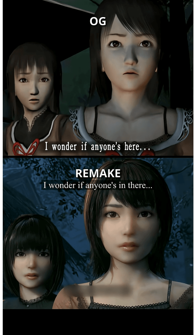레지던트 이블 2 리메이크가 원작의 핵심을 유지하면서도 모든 것을 현대적으로 재구성했던 것처럼, 페이탈 프레임 2 리메이크도 적어도 카메라 시점만큼은 그런 변화를 시도합니다. 더 이상 고정 시점이 아니라, 이제는 3인칭 시점으로 플레이하며 미나카미 마을을 조사하는 내내 자유롭게 카메라를 조작할 수 있습니다. 하지만 그 외의 현대적인 개선 요소들은 기대에 못 미칩니다. 사실 2012년에 나온 프로젝트 제로 2 Wii 에디션조차 거의 비슷한 수준의 개선점을 갖추고 있었을 정도입니다.