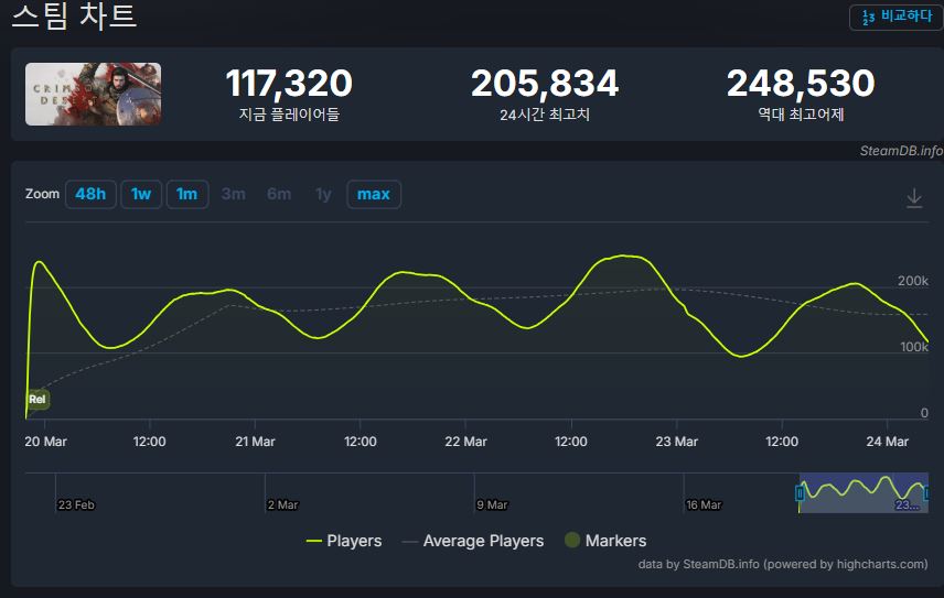 그분들 논리대로라면 리뷰 갯수가 엄청 늘어나서 신규 구매자가 많다는 뜻인데 동접이 늘어야하지 않음? 무려 150시간을 즐겨도 할게 넘쳐나는 게임이라 벌써 다 놀았을리는 없고 | 26.03.24 18:33 | | |