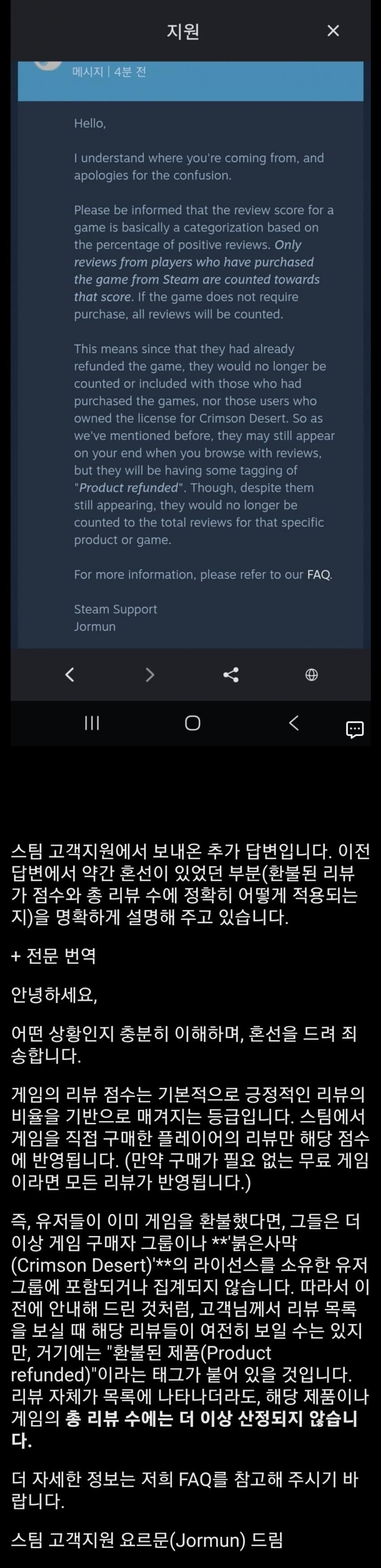 오피셜 입니다. 리뷰 쓰고 환불 하면 해당 리뷰의 평가는 점수 반영에서 빠진답니다. | 26.03.24 14:21 | | |