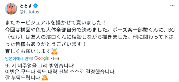 최신 포스터 만든 사람은 캐릭터 디자이너 및 총 작화감독인 스기야마 카즈타카