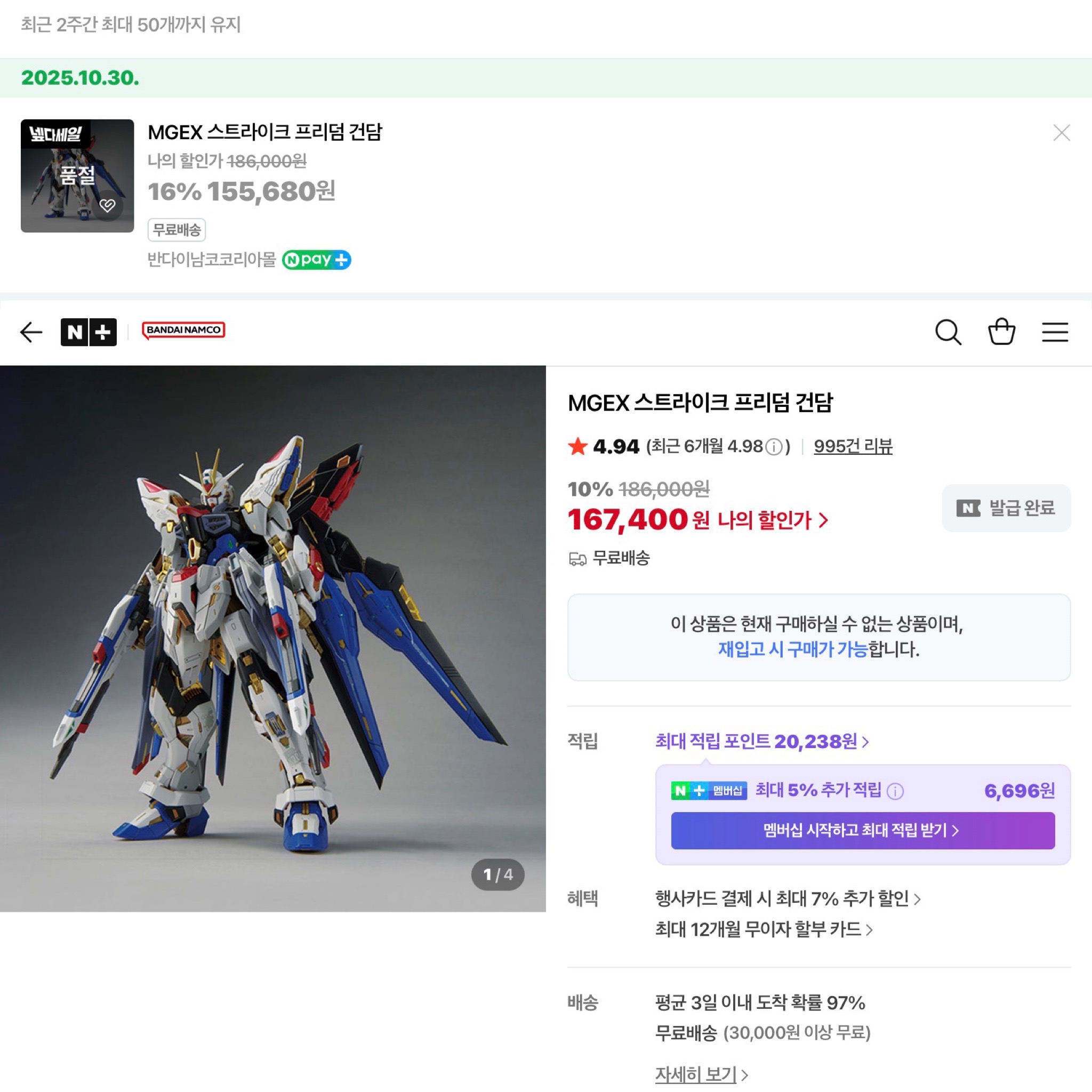 [정보] 네X버 반남코몰. MGEX 스트라이크 프리덤 건담. 오전 11시 판매 시작 [20]