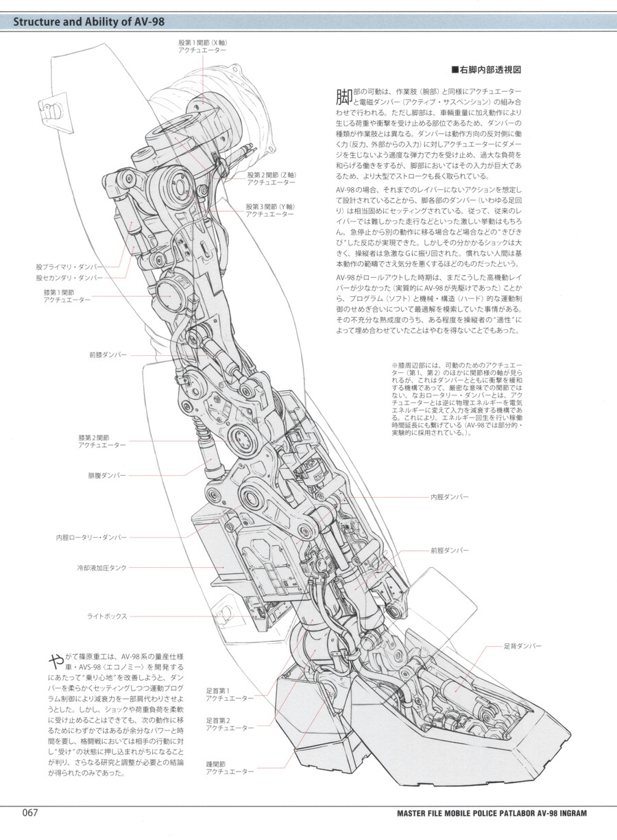 EZY 면 AV-98Plus 잉그램이 나오나 보네요 특차 2과에서 운용되는 AV-98Plus 잉그램(통칭: 잉그램 플러스)은 1998년에 롤아웃된 98식 AV 잉그램의 개량형이다. 기체 전체의 튜닝을 통한 성능 향상과 더불어 제어계 소프트웨어 업데이트로 기본 성능이 크게 향상되었다. 한편, 약 40년에 걸쳐 개량과 재정비를 반복하며 현역으로 운용되고 있다는 점에서 파출소 경찰관들에게 “낡은 놈”이라고 놀림받기도 한다.