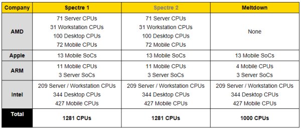 [참고] 멜트다운/스펙터에 영향받는 cpu 리스트 [95]