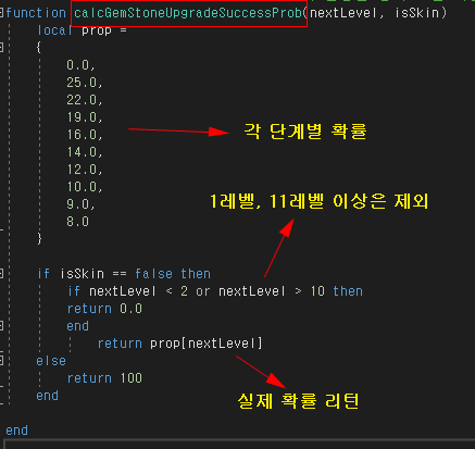 젬스톤, 루미스톤 강화 시에는 calc_gemStoneUpgradeSuccessProb 루아 함수로 확률을 계산하며