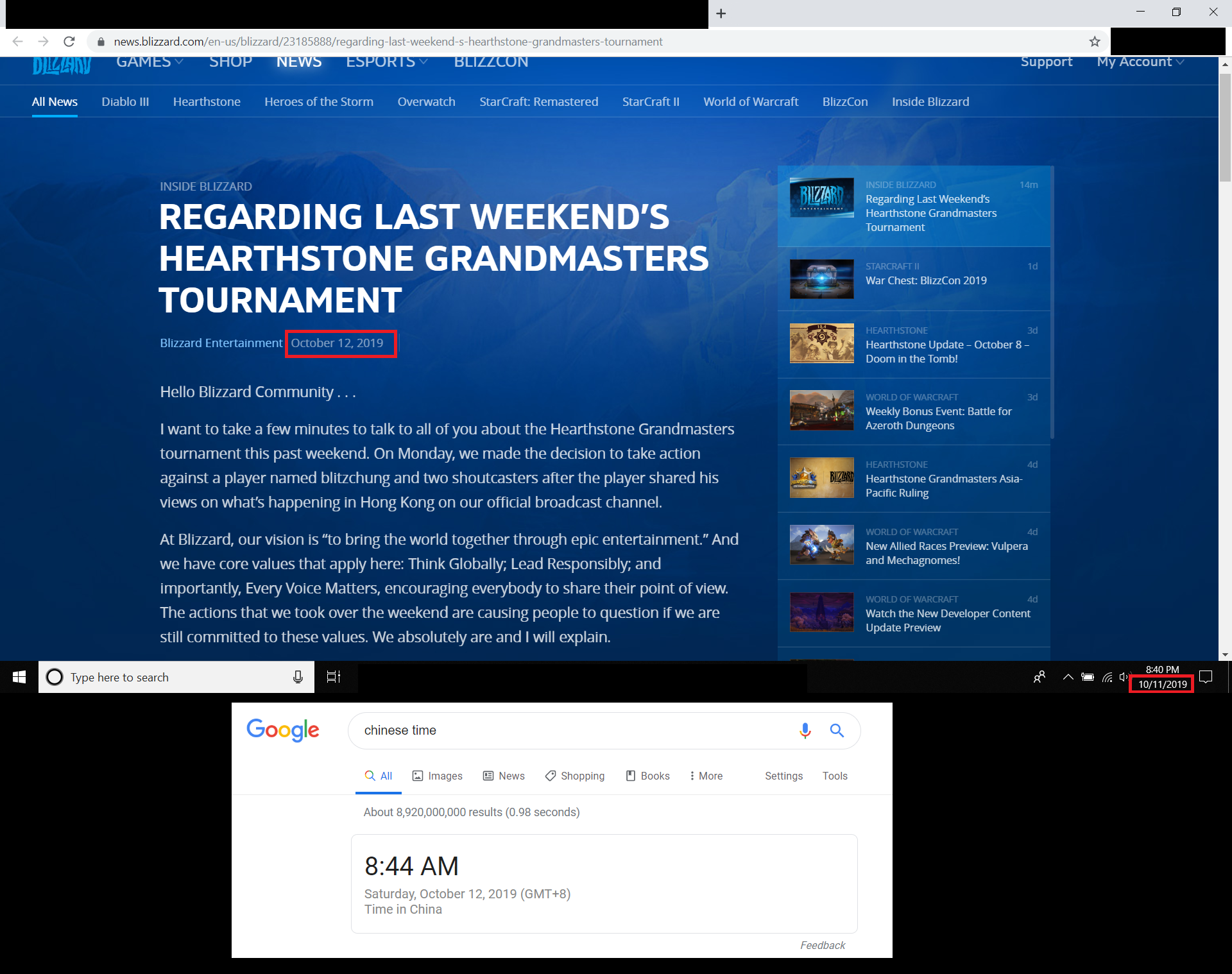그게 아니라 올라온 날짜가 미국 시간보다 하루 후임. 아직 12일 되지도않았는데 12일로 올라온 거. 여기서 추측할 수 있는 게 이미 12일이 된 다른 지역에서 올렸다는 거지. 마침 올라온 시간이 중국 출근 시간이고 ㅋㅋ | 19.10.12 11:23 | | |