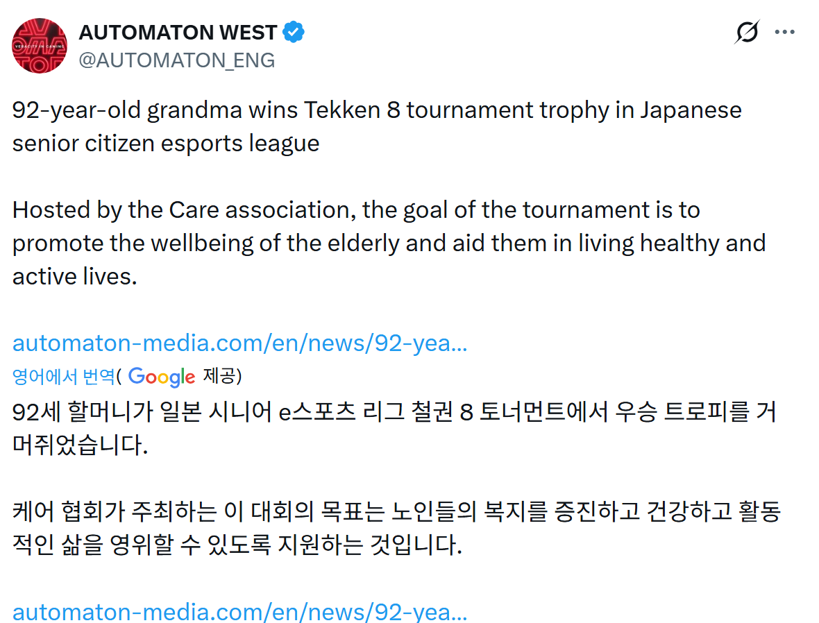시니어 대회면 애초에 노인분들을 위한 거긴 하겠지만 그래도 92세라니..