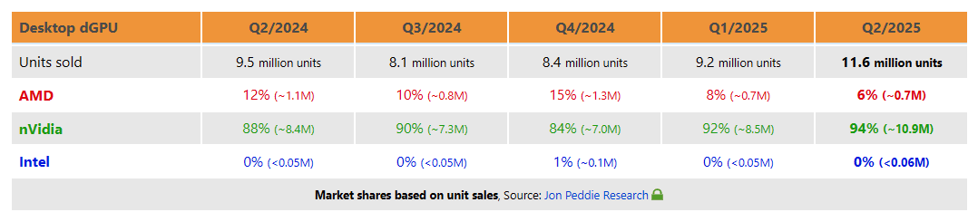 https://www.tomshardware.com/pc-components/gpus/latest-gpu-market-analysis-shows-nvidia-losing-ground-to-amd-and-intel-cracks-the-1-percent-share-milestone-for-the-first-time 이 세상의 중심이 플레이스테이션이라는 착각에서 제발 벗어나세요. 가장 최신의 2025년 3분기 기준으로 '데스크탑 외장그래픽'이 1200만대고 플5 노멀&프로 합쳐서 390만대임. 플스는 전체 생애주기에서 영끌 of 영끌을 해야 간신히 분기당 800~900만대를 찍는데 이건 데스크탑 그래픽카드 기준으론 평균에 불과하고. 심지어 PC 시장 기준에선 한줌 of 한줌도 안 되는 데스크탑 외장그래픽카드만 따졌는데 이 정도 규모임. 랩탑까지 따지면 그냥 비교 자체가 말이 안 되는 수준일거임. 탐라 보니까 골수 소니&플빠인건 알겠는데 이 세상의 중심이 소니랑 플레이스테이션이라는 망상은 제발 그만하길 바람. | 26.01.21 19:38 | | |