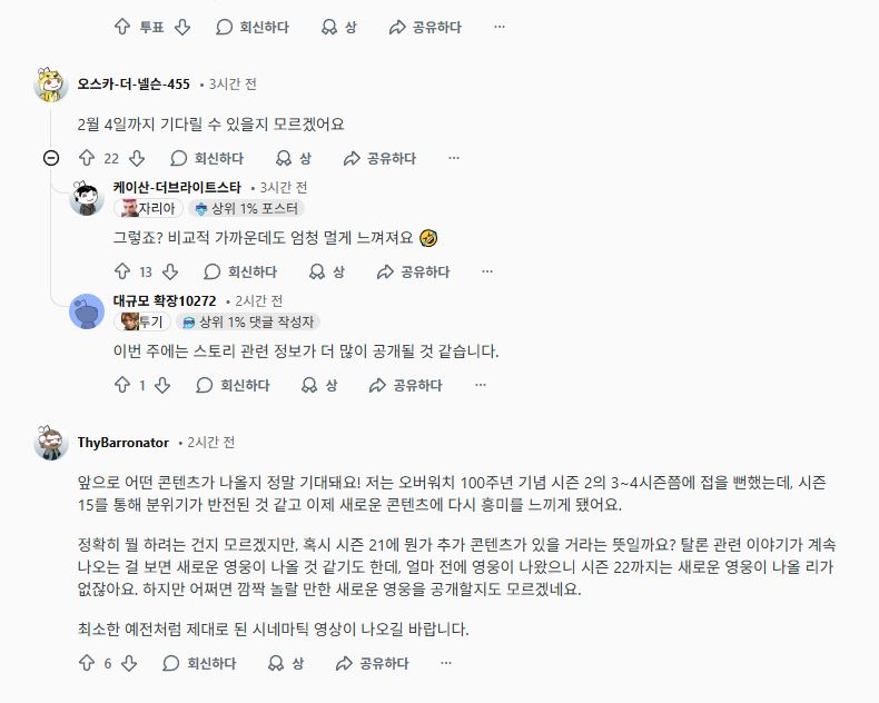 아마 운영이 맘에 안든다고 네거티브하신거 같은데 요 몇년간 공개된 정보들은 말슴하시는 것처럼 빈수레는 아니였죠 그러니까 사람들이 저렇게 기대중인거겠죠? | 26.01.27 03:06 | | |