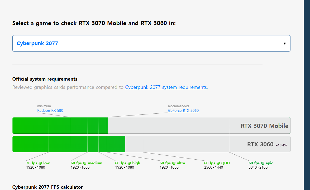 3060이 20퍼쯤 더 높음. 이것도 전원 마운트 기준일거고 휴대용에선 출력 떨어지니까 이만큼 안나올듯 | 26.02.21 19:52 | | |
