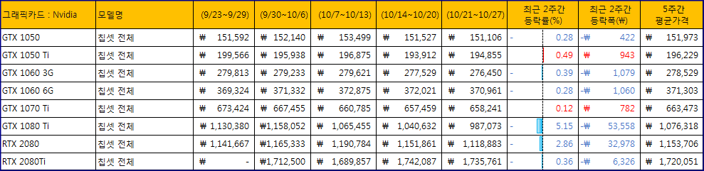 그리고 그 당시의 가격요? 다나와 기사 인용 "3주 째 하락세에 접어든 GTX 1080 Ti가 드디어 90만 원대로 진입했다. 낙폭 -5.15%, 금액으로는 5만 원정도 가격이 하락한 덕분이다. 엔비디아의 최신 그래픽카드 RTX 2080 Ti와 RTX 2080이 출시되면서 점점 힘을 잃고 있다. 단, 가격이 저렴해지곤 있지만 시장에서 재고도 빠르게 사라지고 있으니 구할 생각이라면 일찍 구하는 것이 좋겠다. " 님이 올려준 링크랑 비교하면 그저 물음표 밖에 안나오네요. 참고로 이 이후론 한동안 RTX20 시리즈는 가격이 "올랐고", GTX10은 "하향세"였죠. | 26.03.20 20:56 | | |