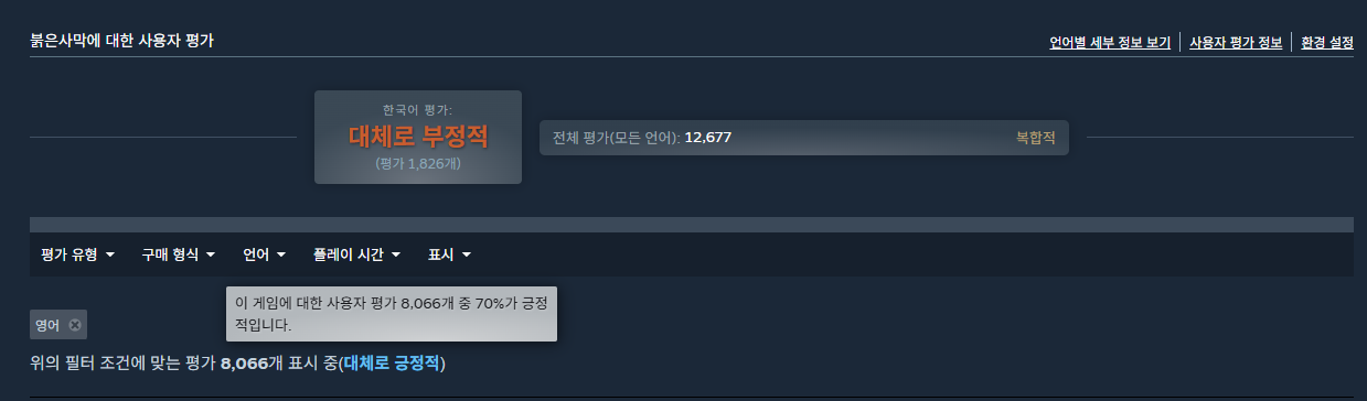 유저수 해외 기준 스팀 평가 판매 유지 한국 판매 순위 2~3위에서 하루만에 100위권 권외 탈락! 스팀 평가