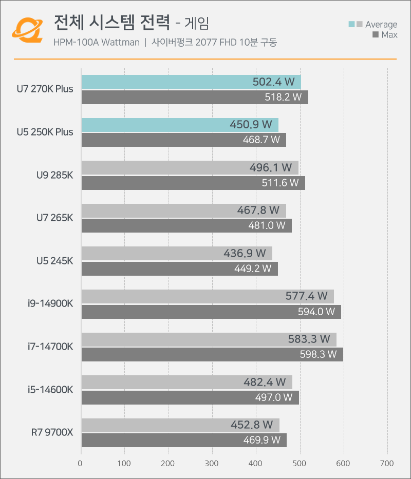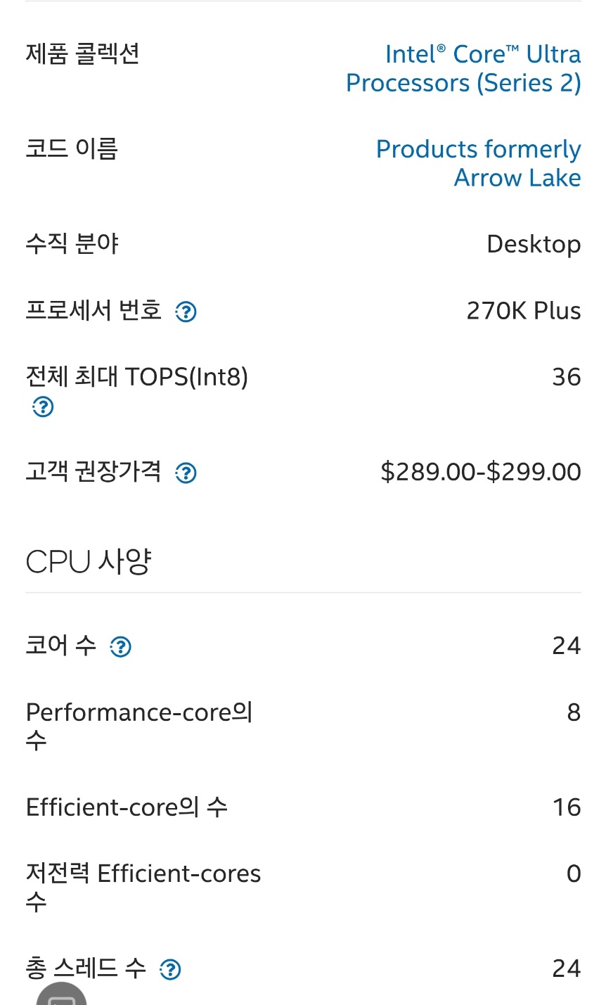 그 말은 9700X랑 같다는 소리인데요? 게임때의 온도와 전력량은 9700X랑 10%정도의 차이에요. 작업때의 온도와 전력량은 285K 나 9950X3d랑 똑같고. 9700X와 9950x3d는 그럼 발열과 전력량에서 문제가 있나요? 시퓨가 싸게 나오면, AMD나 intel 사용자나 다 좋죠. 서로 경쟁하고. 싸고 더 좋은게 나오면 어느 쪽 회사건 쓰는 겁니다. 어느 한회사만 고집할 필요 따위는 없습니다. 자기 용도에 맞게, 자기 지갑 사정에 따라서 사서 쓰는 거죠. 돈많고, 다 문제 없음 9800x3d나 9950x3d나 사는 게 맞아요. 270k는 그쪽이 경쟁자가 아니에요. 9700X 정도가 270K plus의 경쟁자에요. 그것도 50$더 저렴한 가격에 말이죠. 작업만 할 사람은 어차피 비싸게 사는 사람이라 10만원짜리 수냉 정도는 문제 없이 살거에요. 저도 수냉 사서 쓰는데 발열 전력량 더 높은 모델 쓰는 데도 10만원짜리 수냉으로도 할만 했어요. 게임은 아무리 끌어써도 사펑 비슷한 수준일겁니다. 그게 9700x와 경쟁해야 하죠. | 26.03.24 11:34 | | |