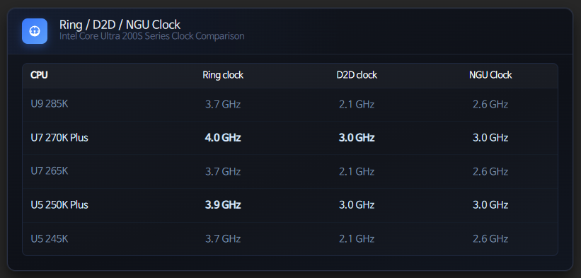 개량된 점은 없고, 그냥 클럭 더 쥐어짠 겁니다. 정확히는 가장 크게 발목을 잡던 D2D(타일 간의 대역폭)NGU(SOC 타일 내부에서의 통신 속도), RING(CPU 타일의 코어들끼리의 통신 속도)를 올린 탓인데, 사실 이거조차도 엄밀히 따지면 작년에 발표한 200S Boost 프로필에서 대부분 선행됐던 것들이죠. 그래서 200s 부스트 프로필을 켠 285K랑 비교하면 거의 차이가 없을 겁니다. 굳이 의의를 찾자면 그 200s 프로필은 말만 좋아 인텔 공식 보증이지 오만가지 제약을 다 달아놔서 보증 호소인 수준이었는데 그런 꼼수는 없어졌다 정도.