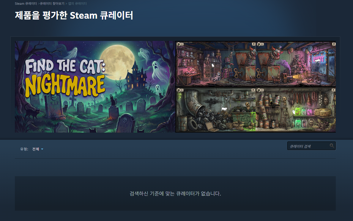 큐레이터 평가가 점수에 합산 안 되는 거 오피셜인가요? 환불된 게임이 빠지는 44퍼가 나와야한다고 말씀 드려도 참 | 26.03.24 17:44 | | |