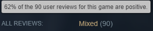 마우스 올리면 90명 중에 62%가 긍정적인 리뷰를 남겼다고 뜨잖아요. 90명 중에 62%가 나올려면 55.8명이 긍정적이어야합니다. 그럼 반대로 부정적은 최대값이 34명입니다. 해당 게임 리뷰를 눌러보면 필터를 먹일 수 있는데 <Negative> <Not Purchased on Steam> 필터 두 개를 먹이면 딱 1명만 부정적인 리뷰를 합니다. 쉽게 말해서 35개의 부정적 리뷰 중에 스팀에서 구입한 사람은 34명이고 1명은 스팀이 아닌 곳에서 구입했다는 이야기가 됩니다. | 26.03.24 18:50 | | |