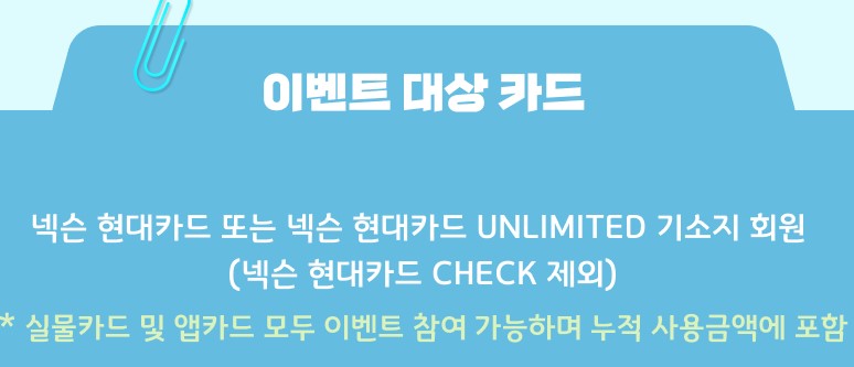 - 실물카드 및 앱카드 모두 이벤트 참여 가능하며 누적 사용금액에 포함됩니다.