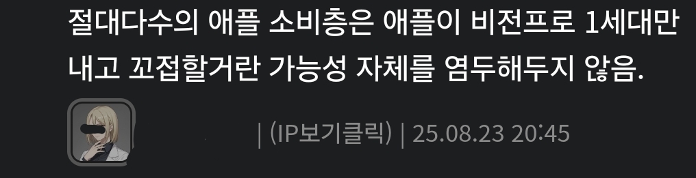 비전 에어가 중단이지 비전 프로 후속작은 나오는 거로 압니다 | 25.10.04 02:06 | | |