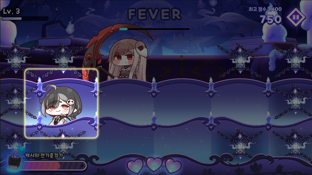 피버 중에는 라이프가 감소하지 않고, 발동 중 일정 점수를 획득하면