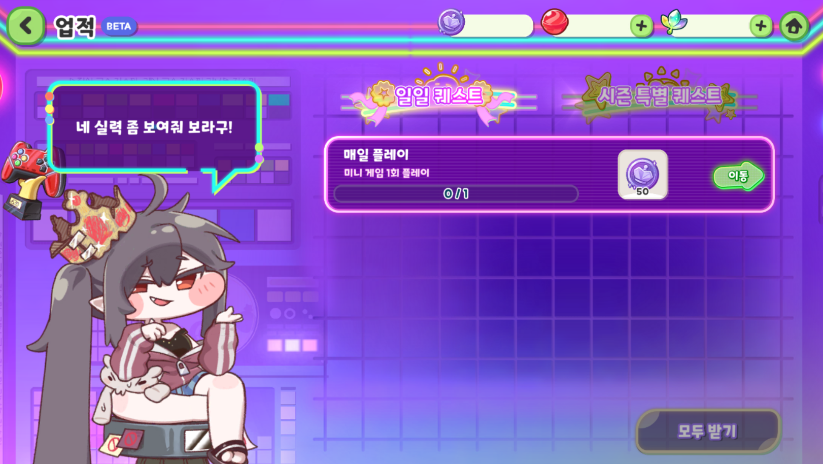 일일 퀘스트와 시즌 특별 퀘스트를 통해서 오락실 코인을 획득할 수 있어요.