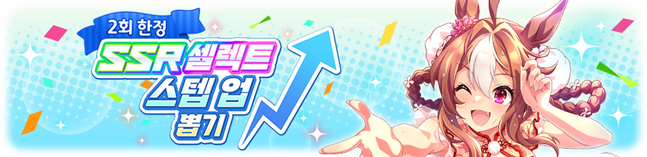 * STEP5 [10번 뽑기!(유료)]에서 원하는 SSR 서포트 카드 1장을 확정적으로 획득할 수 있습니다.