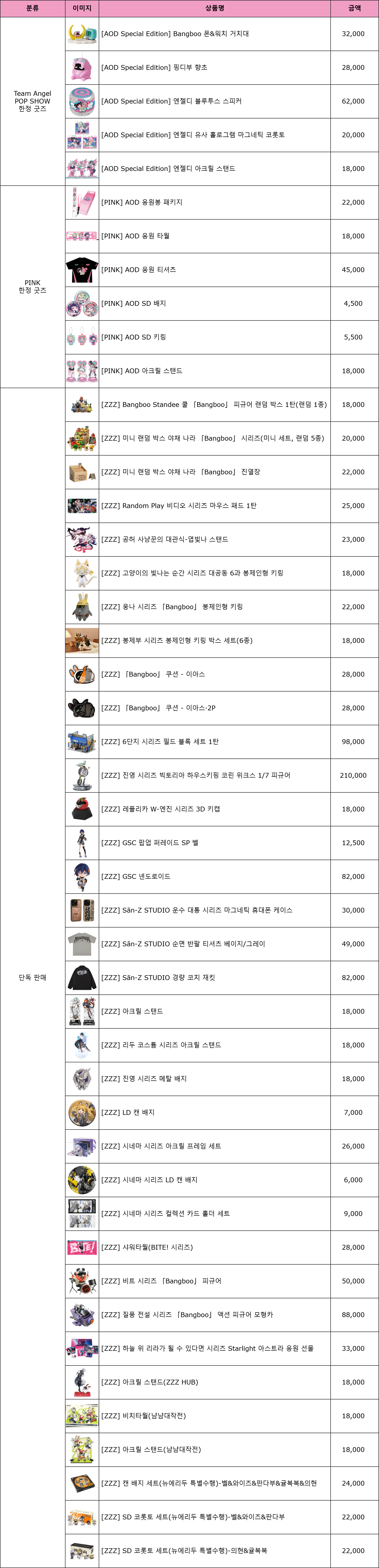 🩷 공식굿즈 판매 리스트