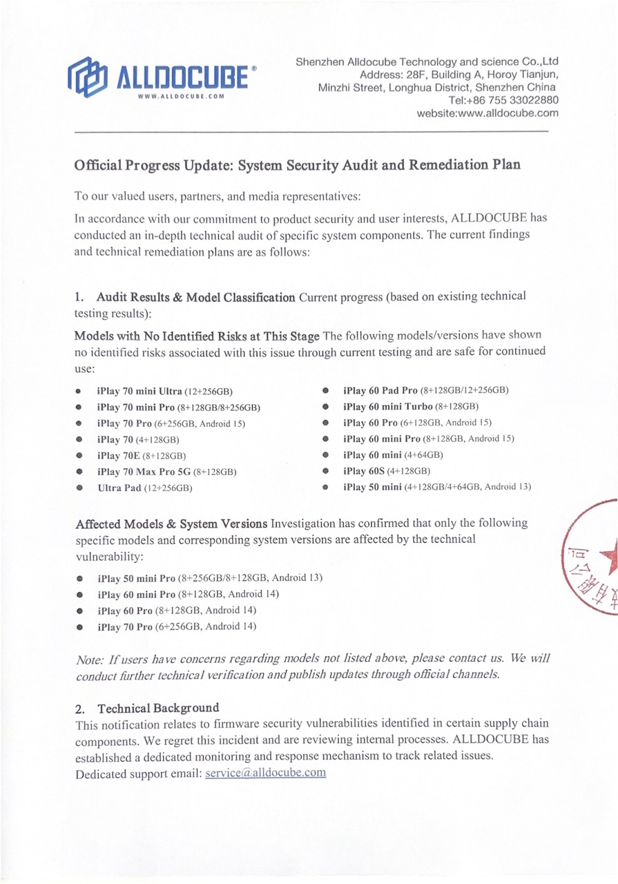 [하드웨어] ALLDOCUBE, 'Keenadu' 보안 이슈 공식 성명 발표 [9]