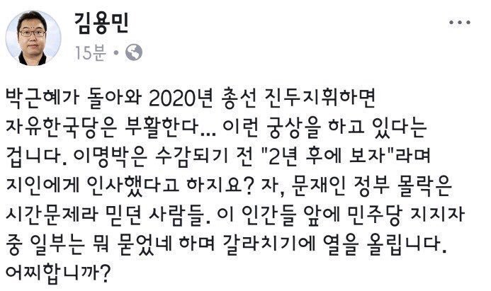 김용민은.. 이럴바에 그냥 sns 안하는 게 나을 듯 싶은 데 ㅎ | 18.12.03 13:52 | | |