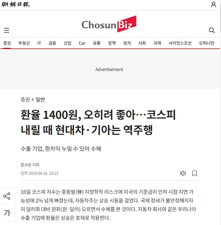 환율 올라서 산업별로위험하다는 기사도있었음 마치 일반화해서 좋게써준것만있는게 아님