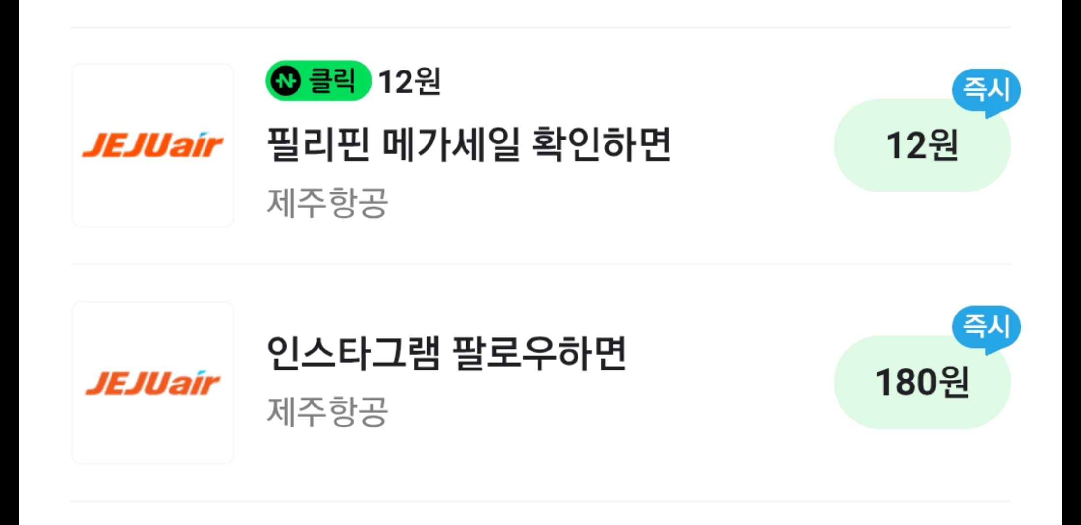 항상 감사드립니다. 즉시 적립혜택에 있는 제주항공은 하루에 여러번 확인 해봐야되나보네요. 이 글보고 밤 12시쯤 받고 어제도 오전 9시에 또 받았는데 오늘도 주네요 어제 오전 11시에도 받았구요. 하루에 최소 3번(36원)을 받을 수 있다는 얘기 입니다